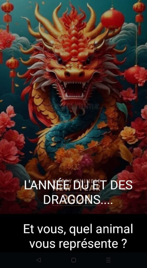CINQUIÈME A LA FAMEUSE COURSE ENTRE LES DOUZE ANIMAUX Pour commencer n’oublions pas la grande course qui a eu lieu entre les 12 animaux représenté dans le zodiaque chinois, Le dragon est lui arrivé cinquième avec un arrêt de sagesse pour aider le lapin en grande difficulté sur le dernier tronçon de la course voulant traverser la rivière sur une planche de bois. Le dragon décida alors de souffler sur la planche de bois pour la propulser sur l’autre rive et ainsi permettre au lapin de ne pas se noyer et de rejoindre l’autre rive. Le dragon se révélera d’une grande gentillesse et d’une force héroïque qui le poursuivra jusqu’au aujourd’hui. Les années passées et futurs du signe du Dragon : 1952, 1964, 1976, 1988, 2000, 2012, 2024 – 2036 – 2048 SIGNIFICATION DE CE SIGNE La créature mythique du Dragon est probablement le signe le plus souhaité de tous figurant dans le zodiaque Chinois. Les Chinois contrairement aux cultures occidentales considèrent le dragon un symbole de Force, et de grande fortune tandis que les Occidentaux considèrent le dragon comme destructeur et dangereux, pour preuve le Dragon à toujours est souvent présent sur de nombreux drapeaux, vêtements, mais aussi devant nombreuses portes d’entrées et le bas des toits des temples. Sans oublier qu’il est célébré lors de nombreuses fêtes nationales comme celle du Printemps en Chine… PERSONNALITÉ DU DRAGON Le Dragon est l’un des signes du zodiaque les plus populaires et les plus souhaités. Les personnes nées l’année du Dragon sont considérées comme courageuses, intelligentes, gentilles et confiantes, poussant nombreux chinois voulant un bébé cette année. Si le gouvernement Chinois n’envisage pas de limiter les naissances, nous pouvons considérer que nombreux Chinois auront le bonheur d’avoir un bébé. À La différence du Bœuf qui préfère la stabilité, le Dragon aime les défis et challenge qui n’hésitera pas à prendre des risques, sa ténacité le poussera à atteindre ses objectifs. En revanche, il est colérique face à l’injustice, n’accepte difficilement les critiques et ne supportent pas l’incompétence autour d’eux…. Le Dragon est l’un des signes du zodiaque les plus chanceux après le Rat. Au travail, sa ténacité, mais aussi sa personnalité le pousse à prendre des risques qui font de lui un parfait LEADER pouvant aimer réussir en Politique ou dans l’entrepreneuriat. Il adore la Politique et peut tout faire sans relâche pour monter les échelons durant toute sa carrière et ainsi tenir ses objectifs. En tant que grand travailleur, il souhaite être entouré de collègues ou collaborateurs comme lui et ne comprendra pas. L’incompétence, la fainéantise ou des collègues ou associés pouvant baisser les bras sans avoir atteint les objectifs. Voici l’exemple de leaders et célébrités ayant le signe du Dragon Bruce Lee : 1940 Deng Xiaoping : 1904 John Lennon : 1940 Rihanna : 1988 Jack Ma : 1964 L’AMOUR EN 2024 Si vous cherchez l’amour en 2024, cela peut être la très bonne année. On dit que l’Année du Dragon est parfaite pour créer des relations solides et durables telles que le mariage !